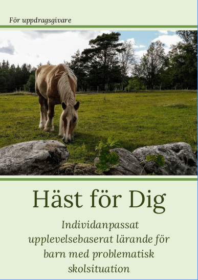 Häst för Dig erbjuder tjänster för unga som inte varit i skolan på länge eller som behöver en förändrad skolsituation. Det är som vanligt skolan som bär det pedagogiska ansvaret för eleven och är den som beslutar om tjänstens form, innehåll och omfattning. Skolan avgör om skolans pedagoger skall vara med under dagarna på gården eller om dagarna handleds av Karin själv – i nära samverkan med skolans pedagoger. Tjänsterna infogas i och anpassas till aktuell läroplan och eventuell åtgärdsplan för att på allra bästa sätt möjliggöra det fortsatta pedagogiska arbetet.